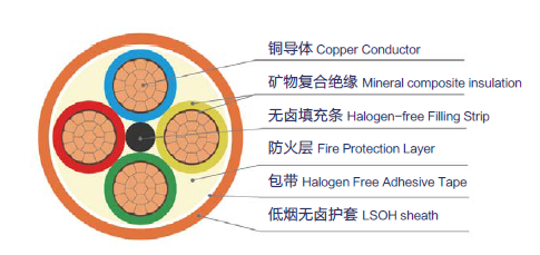 由于电缆的绝缘,护套均是无机化合物材料,没有通常的PVC材料。因此即使在火灾条件下,也无酸性气体发散。